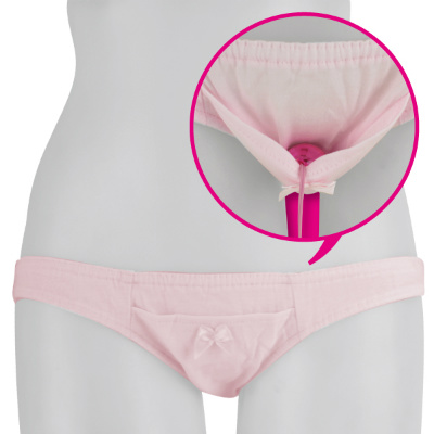 フロントポケットに小型のローターを仕込めるレディースショーツ。