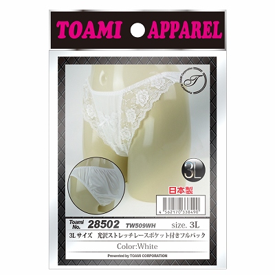 3Lサイズ 光沢ストレッチレースポケット付きフルバック ホワイト(28502)