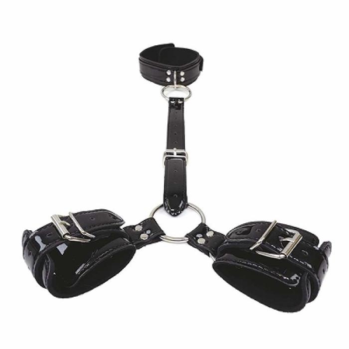 光沢エナメル拘束具 首輪付き背中手枷 |