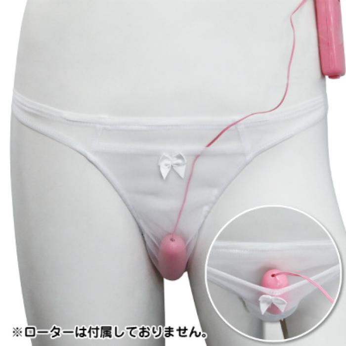 • [名称] ローターポケット付きリボンチャームシースルーローライズショーツ ホワイト