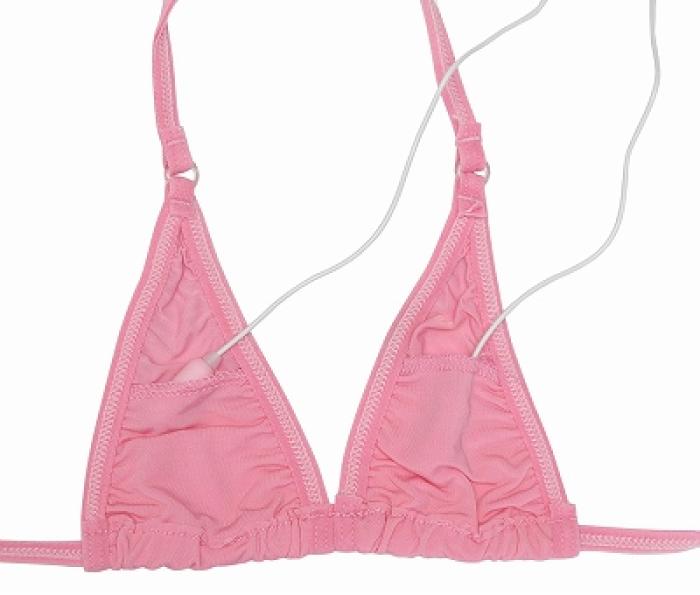 ブラの左右トップ部分とパンティーのクロッチ部分に計3つのローターポケットを設けたセクシーなマイクロビキニです。