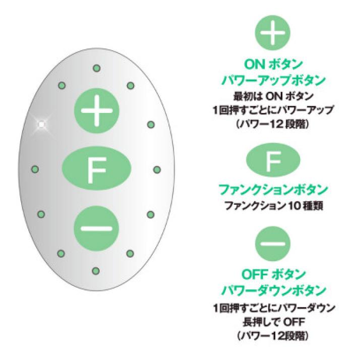 「微弱から激震への12段階スピード」に加え「多彩な10種類の振動パターン変化」機能を搭載。